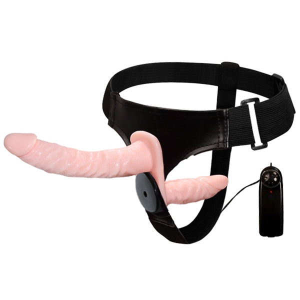 Комплект из двух фаллос-насадок, эластичных трусиков и пульта управления вибрациями.